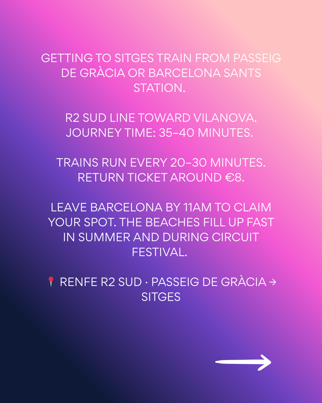 Leave Barcelona by 11am to claim a good spot on the beach. In summer and especially during Circuit Festival, the coves fill up fast and arriving late significantly limits your options.